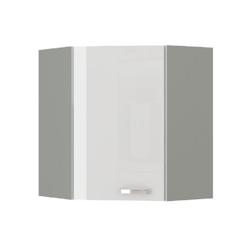 Horná skrinka rohová, 60cm, biely lesk, sivá, PRADO 60/60 N G-72