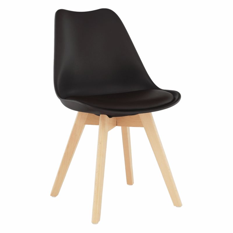 Pevné drevené nohy v odtieni buk sú efektne prepojené s pohodlným plastovým sedadlom, ktorý nadväzuje na pohodlné plastové operadlo
