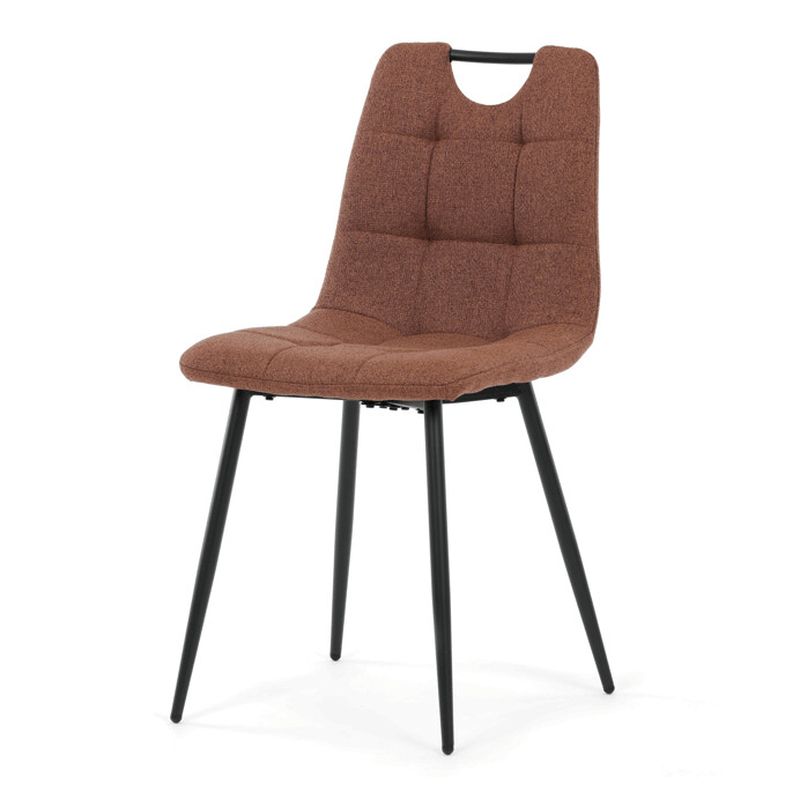Jedálenská stolička DCL-V2017 BR2 spája pohodlie s praktickým riešením vhodným do modernej jedálne aj kuchyne. Sedák a operadlo sú potiahnuté kvalitnou hnedou látkou, ktorá je nenáročná na údržbu a doplnená o dekoratívne prešívanie pre zvýraznenie dizajnu. Táto hnedá látková jedálenská stolička pôsobí elegantne a ľahko sa kombinuje s rôznymi typmi stolov.