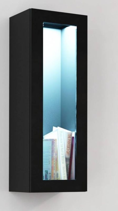 Závesná vitrína, 35cm, čierny mat, čierny lesk, VIGO 90 SKLO